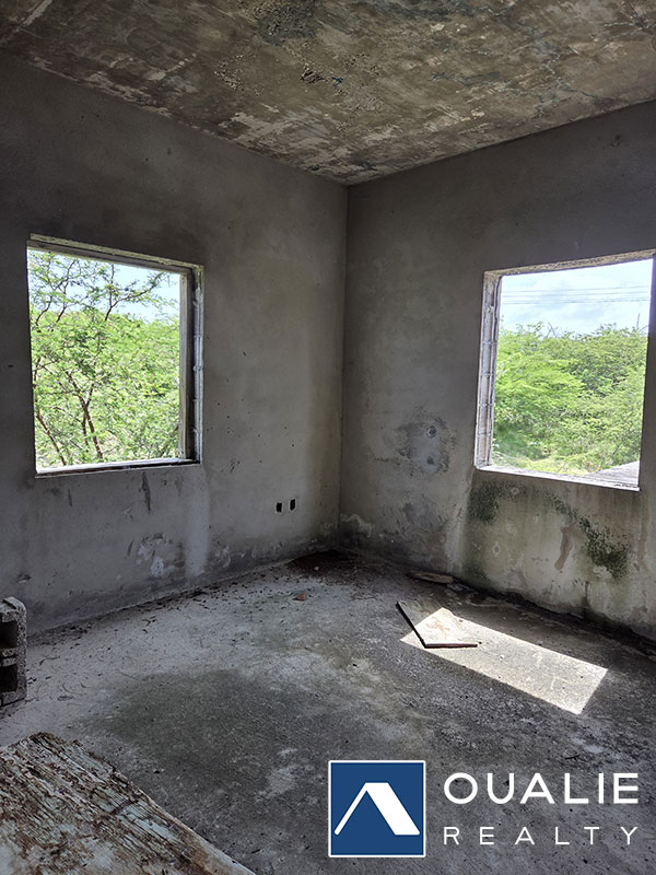 Located in Camps on 0.588 acre or 25,613 square feet of land this unfinished house has a main three bedroom house with large veranda and a separate one bedroom smaller house.